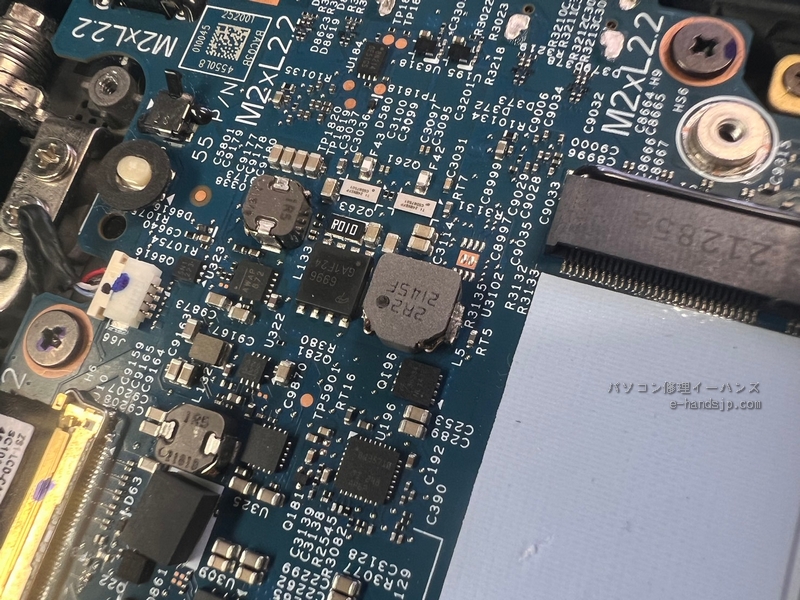 このような症状は、一見すると電源ボタン不良やバッテリー不良にも見えますが、実際にはマザーボード上の不具合が関係していることも少なくありません。